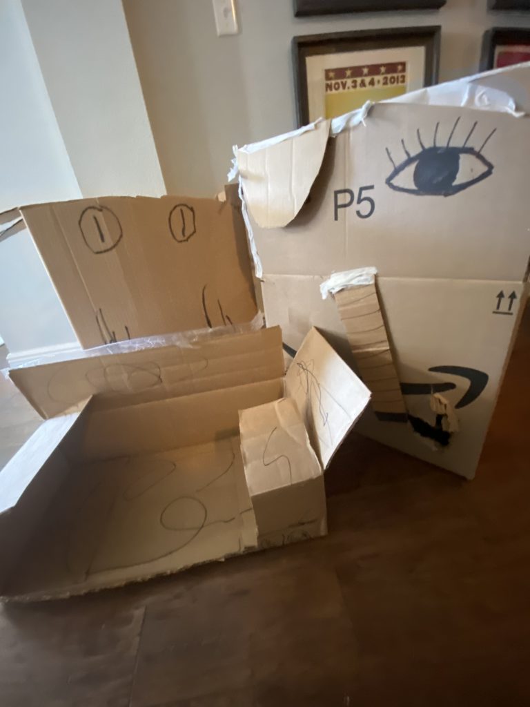 Cardboard. Seriously, you laugh…here is a pic of my kids and their recent cardboard creations! A great, creative outlet. with endless possibilities! So save those boxes and let them play!