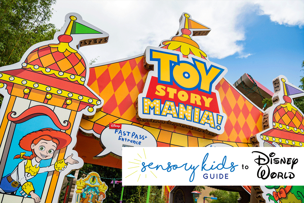 This ride perplexes me a little with my SPD child. It has ALL the triggers (loud, moving car, 3D glasses plus having to pull the cord on the little canon in front of you while aiming at targets) but it is his ABSOLUTE favorite ride in probably ALL of Disney World. If your child is familiar with Toy Story (let’s be honest, whose isn’t?!), it’s probably why this is such an enjoyable experience! Aiming at silly, child friendly objects is all part of the fun and interaction with the ride. Each car will move in front of a screen with targets to hit and a countdown clock, once you finish, the car will move quickly to the next screen. You encounter about 5 different screens before the ride commences.